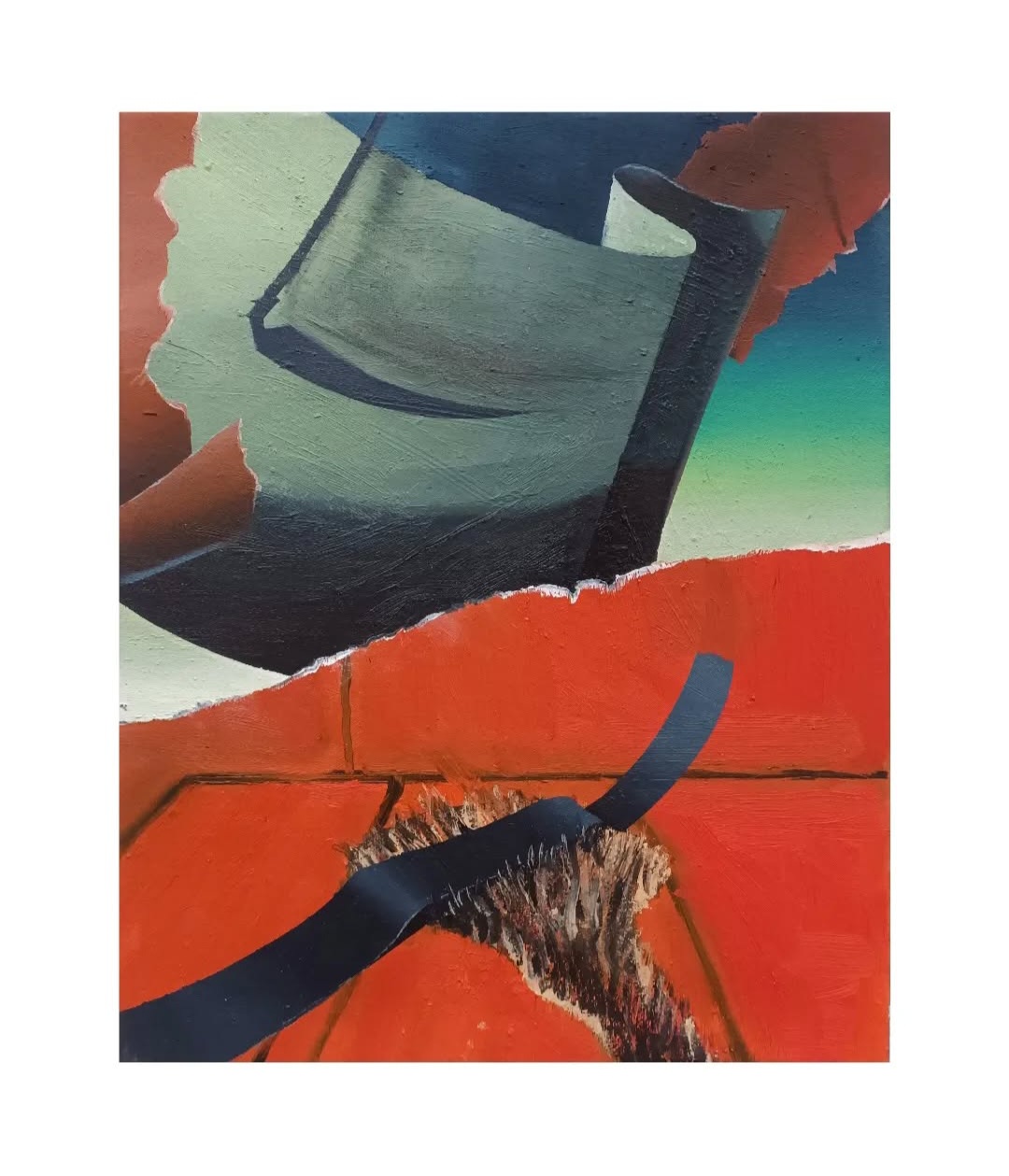 Těžištěm Buchtelíkovy tvorby je téma strachu a určitého implicitního zla. Ve svých raných cyklech pracoval s kolážovitými předlohami složenými z obrazů idealizované socialistické reality – prvomájových průvodů, spartakiád, jež bychom mohli nazvat jako náměty tehdejšího „kolektivního optimismu“. Tyto motivy pak autor konfrontoval se snovými krajinami plnými výbuchů, magmatu, tekuté oceli a dýmu. Figury v jeho malbách působí podivně klidně a silně kontrastují se závažností sdělení, o které autor usiluje. Charakteristickým znakem jeho malířského rukopisu se stává též vizuální napodobení koláže, tj. namalovaný či potrhaný papír nebo jiný materiál roztrhaný na „cáry“. To lze sledovat i v díle, které je součástí univerzitní sbírky a je tak pro Buchtelíkovu tvorbu signifikantní.